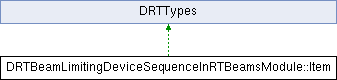 Inheritance diagram for DRTBeamLimitingDeviceSequenceInRTBeamsModule::Item:Public Member Functions | |