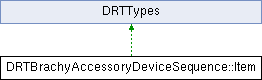 Inheritance diagram for DRTBrachyAccessoryDeviceSequence::Item:Public Member Functions | |