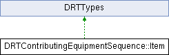 Inheritance diagram for DRTContributingEquipmentSequence::Item:Public Member Functions | |
