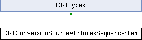 Inheritance diagram for DRTConversionSourceAttributesSequence::Item:Public Member Functions | |