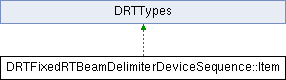 Inheritance diagram for DRTFixedRTBeamDelimiterDeviceSequence::Item:Public Member Functions | |