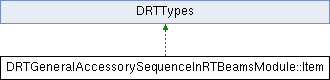 Inheritance diagram for DRTGeneralAccessorySequenceInRTBeamsModule::Item:Public Member Functions | |