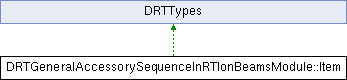 Inheritance diagram for DRTGeneralAccessorySequenceInRTIonBeamsModule::Item:Public Member Functions | |