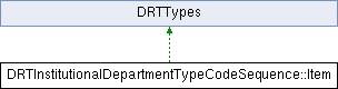 Inheritance diagram for DRTInstitutionalDepartmentTypeCodeSequence::Item:Public Member Functions | |