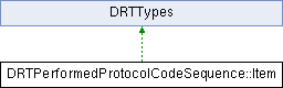 Inheritance diagram for DRTPerformedProtocolCodeSequence::Item:Public Member Functions | |