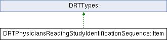 Inheritance diagram for DRTPhysiciansReadingStudyIdentificationSequence::Item:Public Member Functions | |