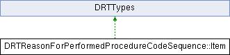 Inheritance diagram for DRTReasonForPerformedProcedureCodeSequence::Item:Public Member Functions | |