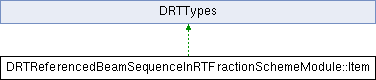 Inheritance diagram for DRTReferencedBeamSequenceInRTFractionSchemeModule::Item:Public Member Functions | |