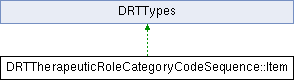 Inheritance diagram for DRTTherapeuticRoleCategoryCodeSequence::Item:Public Member Functions | |