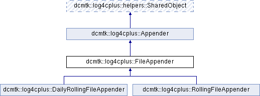 Inheritance diagram for dcmtk::log4cplus::FileAppender:Public Member Functions | |
